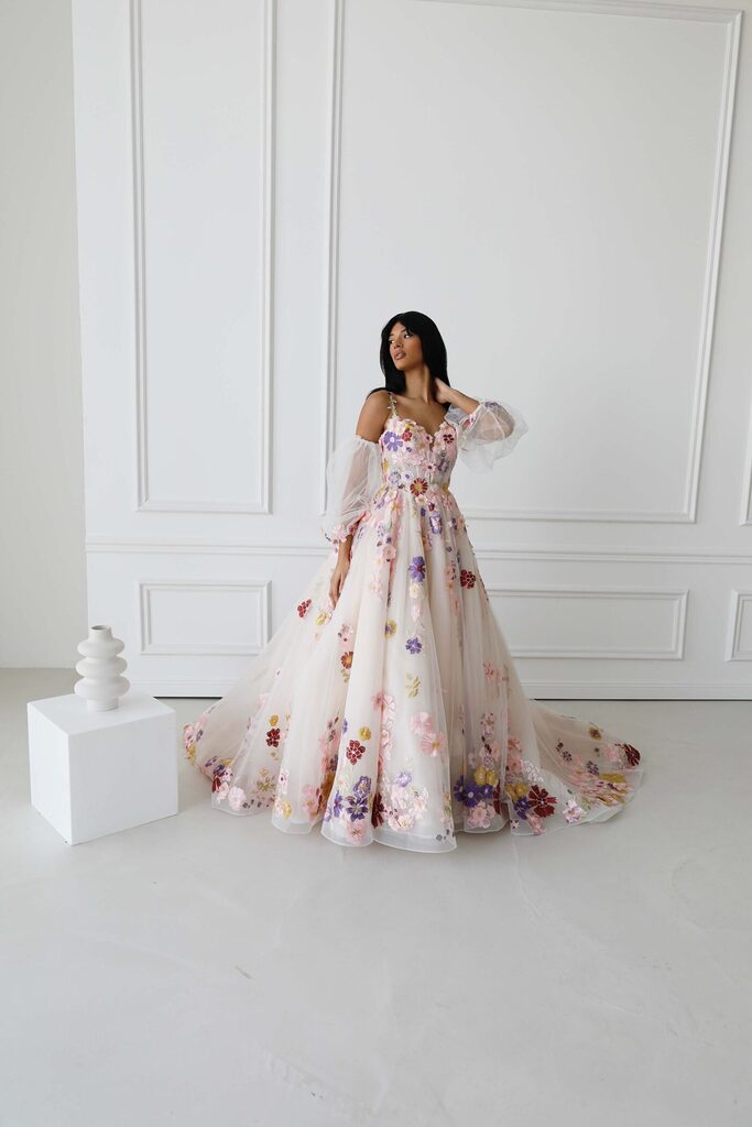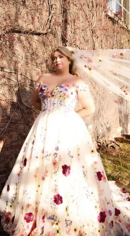 En… heb je onze trouwjurken met gekleurde bloemen al gezien? Perfect voor zomerse bruiloften, vrolijk, kleurrijk én origineel.